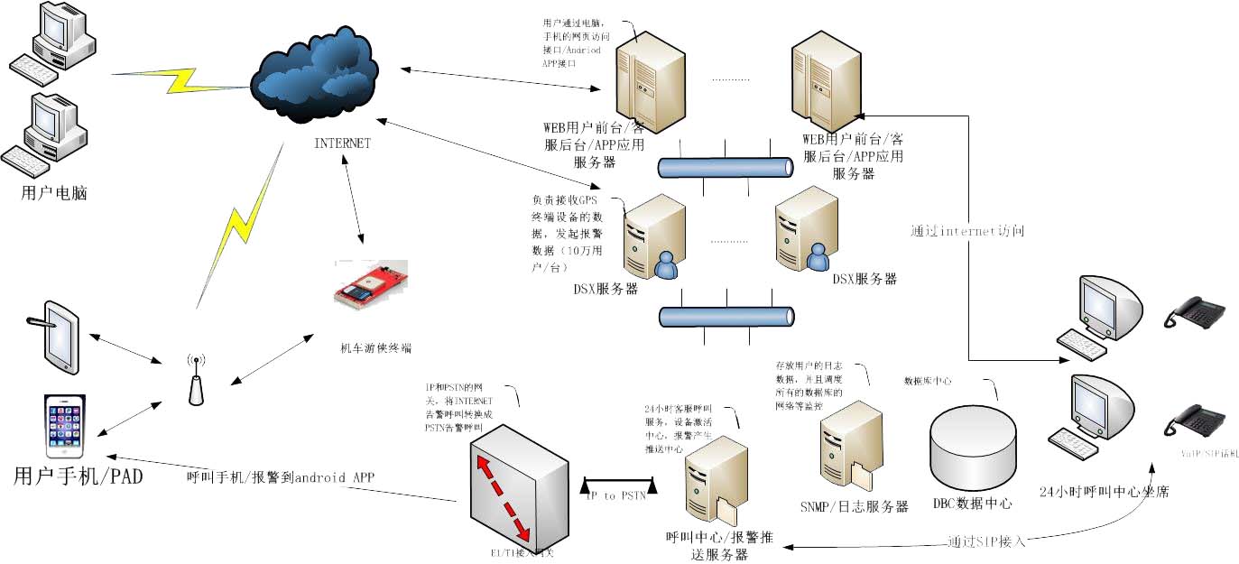 电动车监控平台通过WEB页面方式/智能手机进行服务呈现及管理操作。终端告警方式需支持短信、语音告警功能;平台GIS地图应支持显示详细地理位置;应支持GPS定位及A-GPS定位;平台对不同用户应有具体分级定义规则,并适配相应权限;平台具备日志生成、存储、查询能力;与移动支撑平台对接用户管理信息;平台应兼容汽车监控终端管理并提供定位、轨迹查询、电子围栏等功能