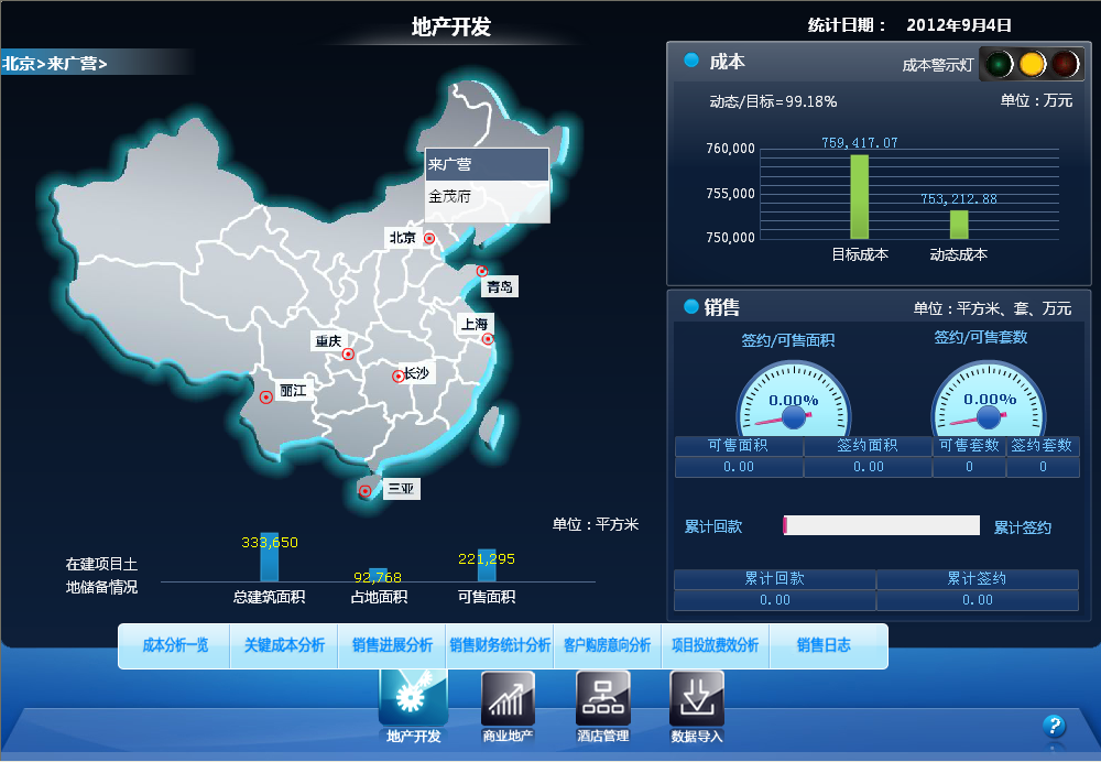 当前位置:解决方案>商务智能项目>方兴地产领导管理驾驶舱